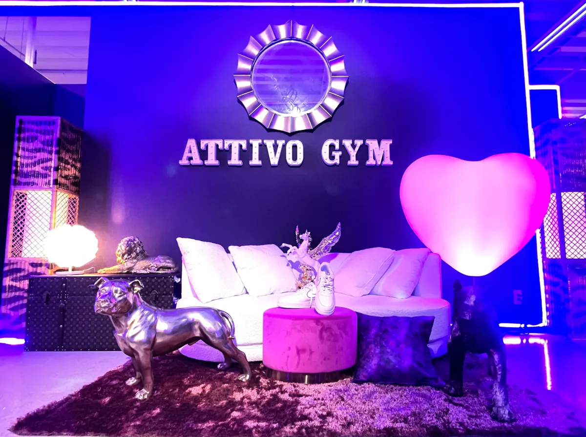 アッティーボジム栃木さくら店の入口には、シンボル的存在である大きなハートのオブジェが設置されています。このアート作品は、来館者に特別な気分をもたらすことを目的としています。また、館内にはペガサスがデザインされた装飾が施され、非日常感を演出します。独自の照明により、ブルーとレッドの幻想的な空間が広がり、ジムという枠を超えた体験を提供します。まるでディスコや宇宙空間にいるかのような感覚を味わえます。