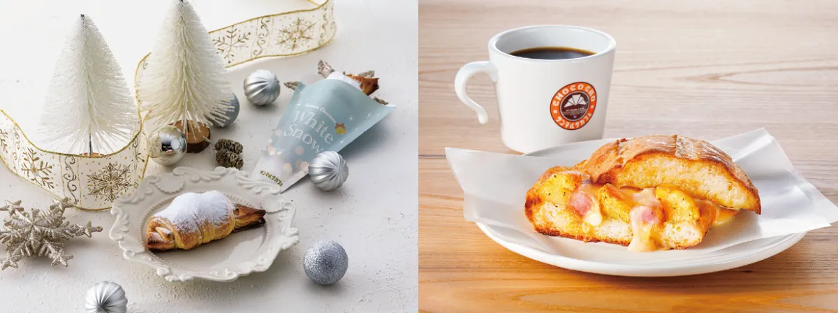 「プレミアムチョコクロ ホワイトスノー」は、クリスマスを彩るために特別に作られたこの冬限りのスイーツです。サンマルクカフェ自慢のサクサクのクロワッサン生地の中には、ミルキーなホワイトチョコレートがぎっしりと詰まっています。そして、焼き上がりにはパウダーシュガーをまぶし、まるで粉雪が舞い降りたかのような幻想的な見た目に仕上げています。口に入れた瞬間、ホワイトチョコレートがとろけ、心地よい甘さが広がります。この一品は、クリスマスの特別な雰囲気を感じさせる贅沢なスイーツです。