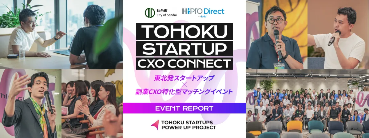 本イベントは、パーソルキャリア株式会社が運営している「HiPro Direct」の支援を受け、地域課題の解決を目指すスタートアップを応援する形で仙台市が主催したものです。副業CXO対象のマッチングイベントという新しい試みが、今後の東北地域のスタートアップシーンに新しい風を吹き込むことが期待されています。